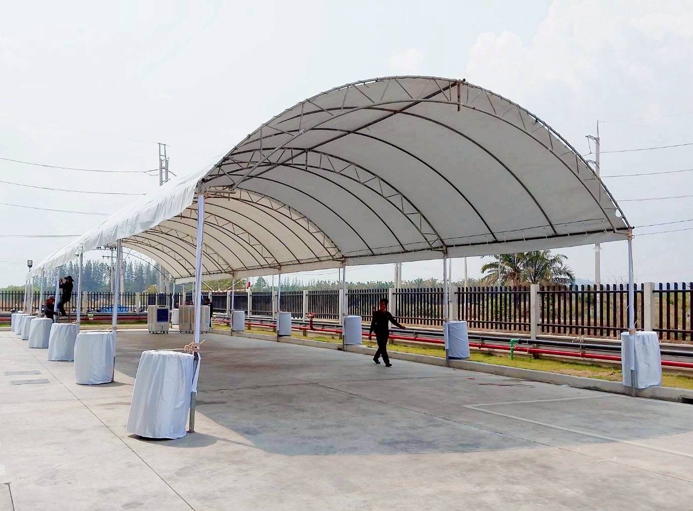 - เต็นท์ทรงโค้งสีขาว ขนาดหน้ากว้าง 18 เมตร ต่อความยาวได้ช่วงละ 6 เมตร (ความยาวตามต้องการ)